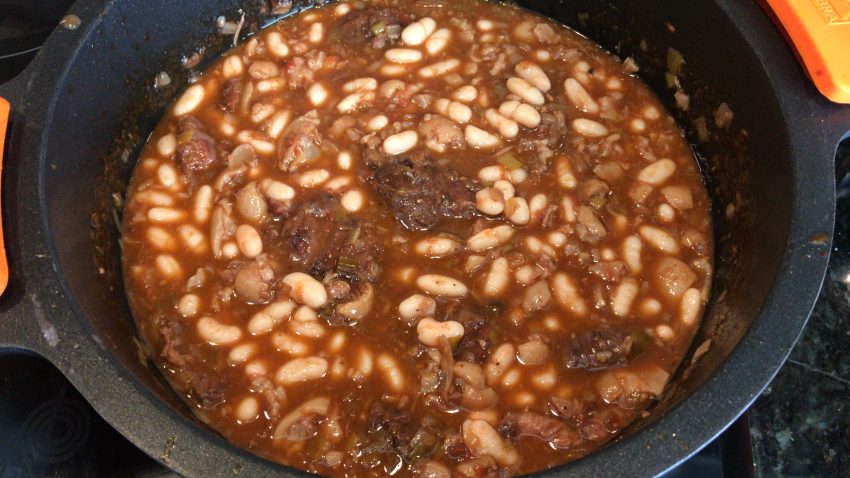 Y cuando llega a la mesa, humeante, con las alubias brillando entre la carne, es imposible no sonreír. Porque en cada bocado hay algo ancestral: la calidez de una cocina encendida, el respeto por la tierra y el cerdo, la memoria de tantas manos que antes removieron ollas parecidas.