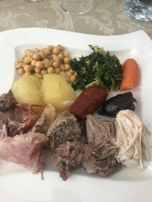 El primer sorbo del caldo, intenso y reconfortante, abre el apetito y prepara el cuerpo. Después llegan los garbanzos, tiernos, cargados de sabor, acompañados de verduras que equilibran la contundencia del plato. Y finalmente, las carnes: el chorizo, la morcilla, el tocino, la ternera, el pollo… cada bocado es una celebración, una demostración de generosidad en la mesa.